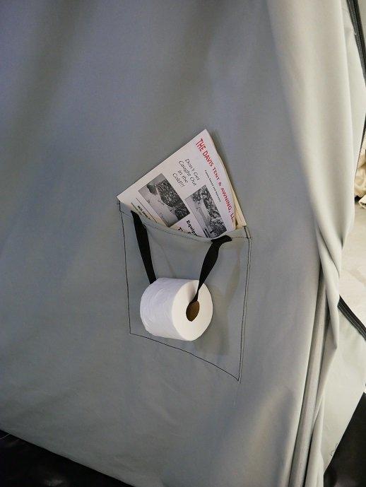 In addition to being a shower tent, The Royal Throne also makes a great potty tent. The Royal Throne Tent measures 4′ 9″ x 4′ 9″ with a front height of 7′ sloping to 6′ in the back. Inside there is a Velcro strap to hold your toilet paper, window for ventilation, and a pouch for reading material.